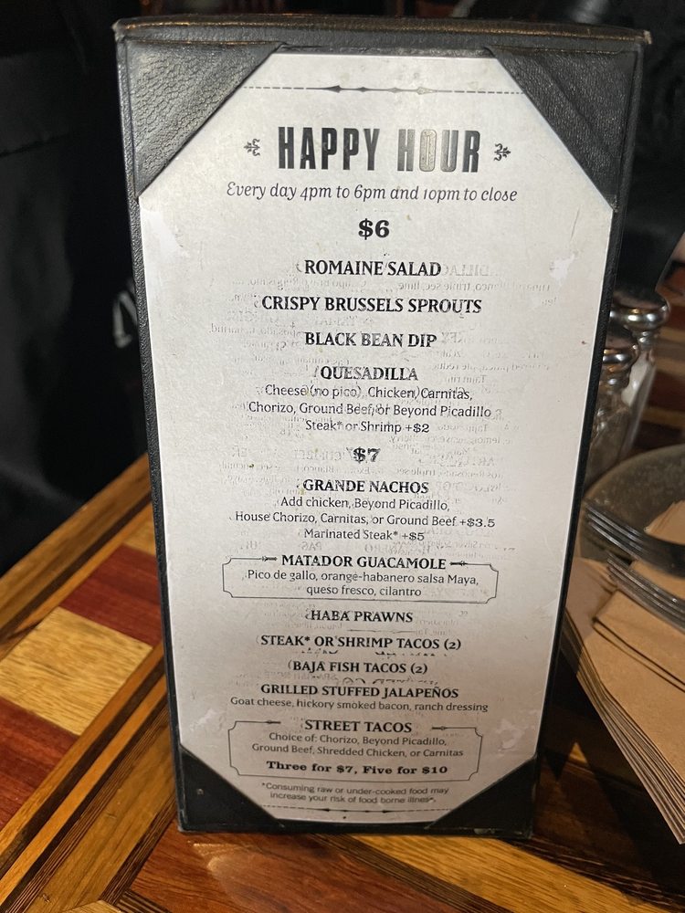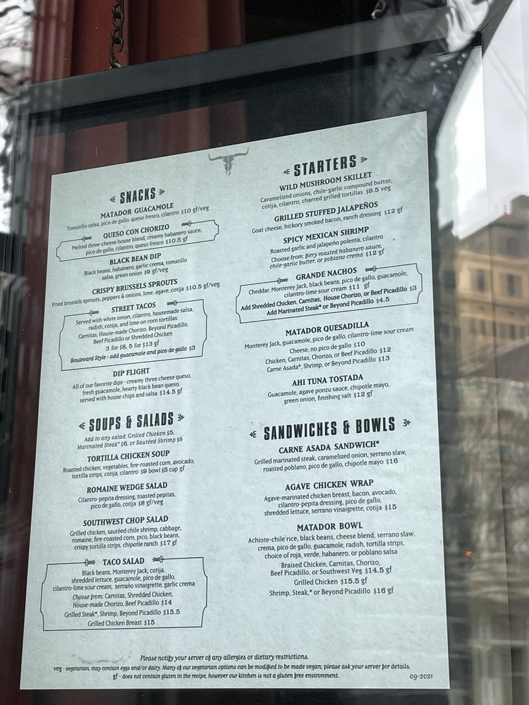 Matador Tacoma is a Tex-Mex restaurant located in Tacoma, Washington, offering a wide range of options for diners. The menu features signature dishes like the Agave Chicken Wrap and Bacon Cheeseburger, as well as small plates like Black Bean Dip and Crispy Brussels Sprouts. For family-style meals, there are options like Familia Fajitas and Street Tacos. The restaurant also caters to various dietary preferences with vegan and vegetarian options available. Matador Tacoma provides a trendy and casual dining experience, perfect for groups and late-night outings. With a full bar, happy hour specials, and outdoor seating, it's a great spot for enjoying delicious Tex-Mex cuisine in a vibrant atmosphere. I personally enjoyed the flavorful dishes and the inviting ambiance of Matador Tacoma—it's definitely a must-visit for Tex-Mex enthusiasts in the area.